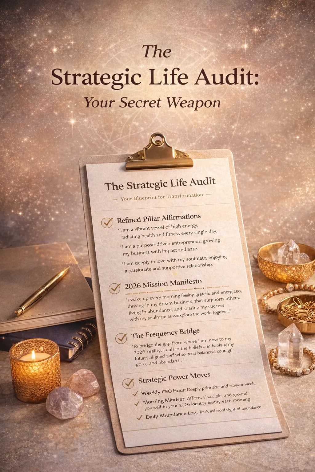 The Strategic Life Audit is a professional deep-dive into your manifestation strategy - a blueprint for transformation.